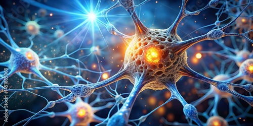 Illuminated Neural Network Microscopic View of Interconnected Neurons Communicating and Transmitting Signals