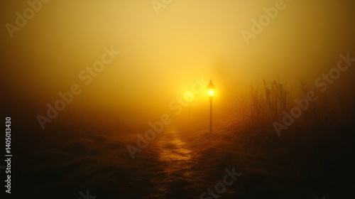 Illuminated Path Through Golden Fog