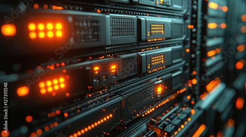 Illuminated server rack, data center, processing, glowing lights, technology, background, network, infrastructure, storage, computing