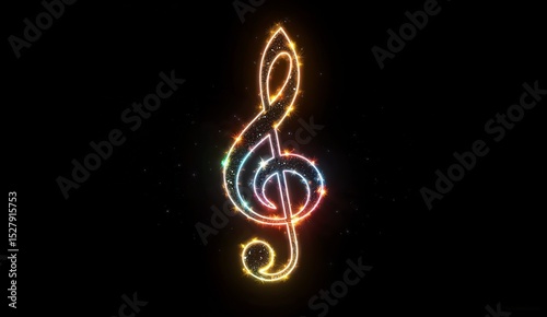 Illuminated Treble Clef with Neon Glow on Dark Background