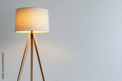 Illuminated Tripod Floor Lamp with Linen Shade in Modern Interior