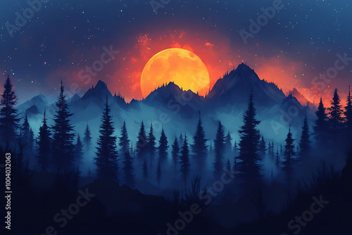 illustration featuring digital abstract technology with space for titles, layered over a forest background. Ideal for tech design concepts.