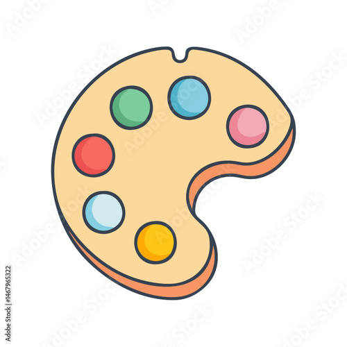 Illustration of a colorful artist paint palette with circles for mixing colors for painting