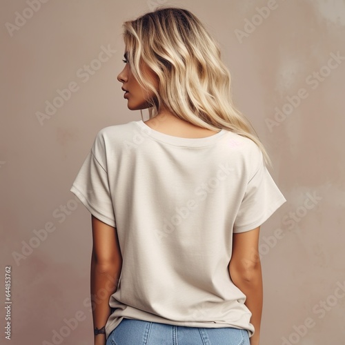 Illustration of a fashion portrait with plain t-shirt mockup, AI Generated
