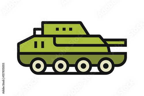 Illustration of a Green Military Tank with Black Outlines and Wheels