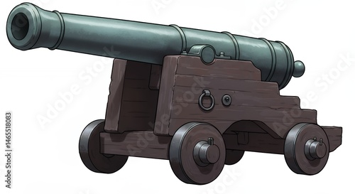 Illustration of a historical cannon on wooden carriage isolated on white background