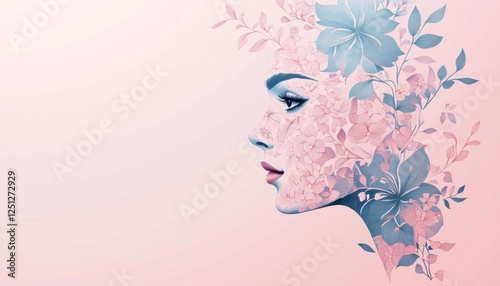 Illustration of a woman s face and floral patterns in papercut style