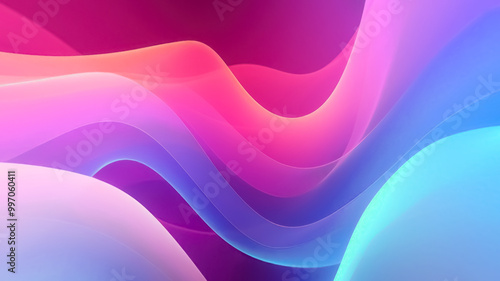 Illustration of an abstract background with neon red pink purple blue wavy shaped waves with effects