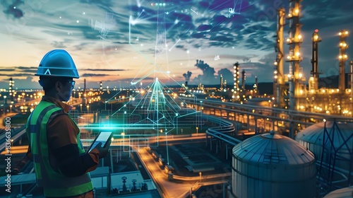 Illustration of Continuously monitoring operational data to detect anomalies, optimize performance, and ensure safety in industrial plants. Ai Generate.