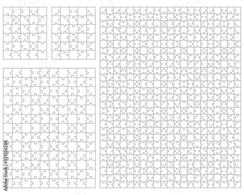 Illustration of four white puzzles, separate pieces