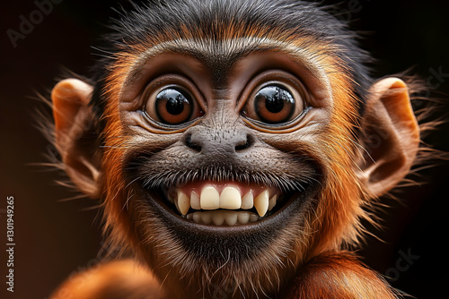 Illustration of Happy Monkey Smiling, Teeth, Eyes, Fur