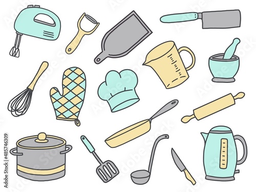 Illustration of items from the kitchen. Cooking utensils. Cooking accessories.
