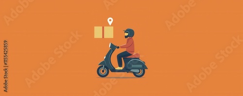 Illustration of person on scooter with delivery map icon