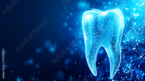 Illustration of tooth in futuristic polygonal style. Concept of protecting or treating teeth.