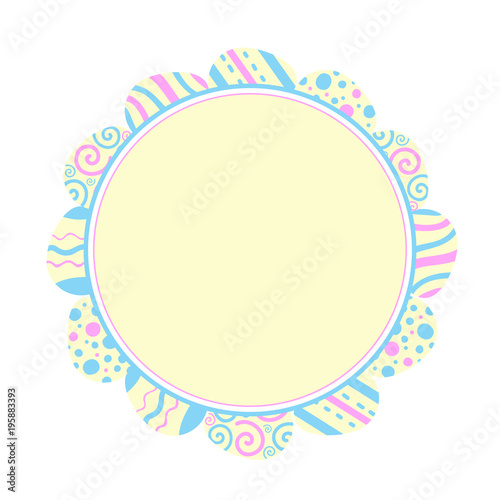 Illustration round frame of colored eggs. Easter holiday. Flat design