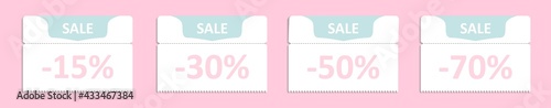 Illustration set of stickers cards icons tags for sale -15% -30% -50% -70%