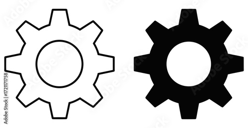 Illustration showcasing two gears, one outlined in white and the other filled in black color design
