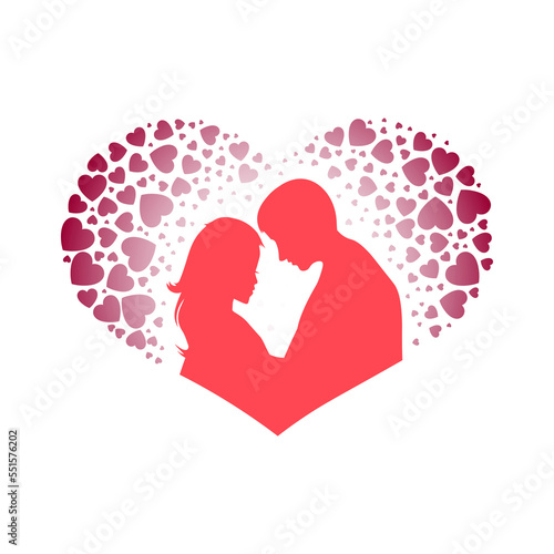 Illustration with a silhouette of a heart, a guy and a girl, design element
