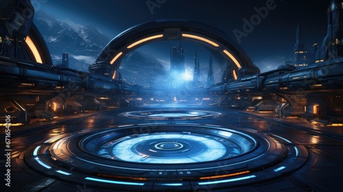 Image 3D rendering of futuristic sci fi room scifi background with glowing lights Generative AI