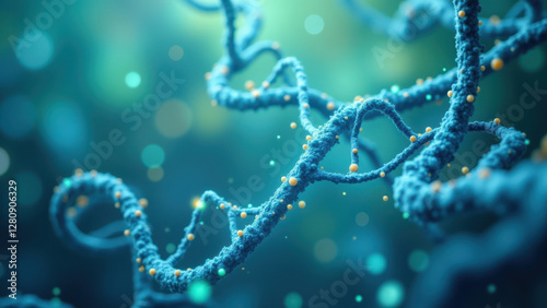 Image of a DNA double helix with a blue glow highlighting semaglutide sequence.