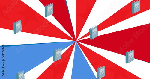 Image of back to school text over school items icons on blue red and white background