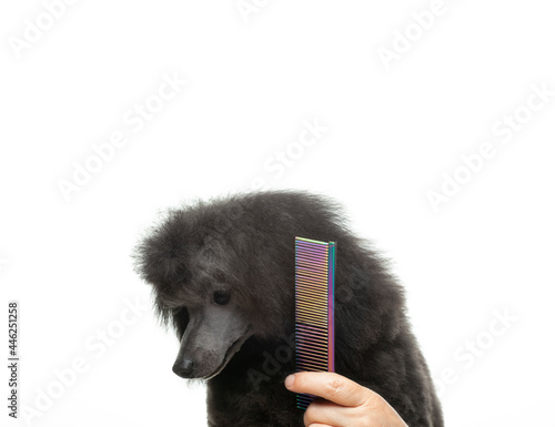 image of dog hand hairbrush white background