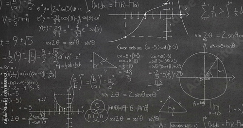 Image of mathematical equations and formulas floating against textured grey background