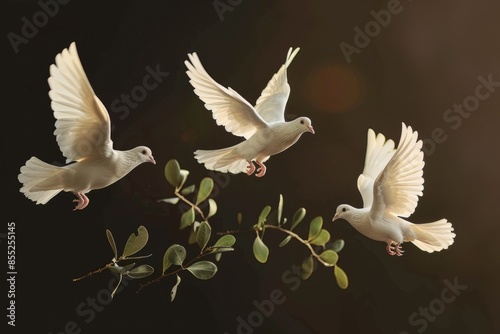 Image of three white doves soaring through the air, a symbol of peace and harmony