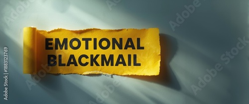Image of torn yellow paper labeled 'Emotional Blackmail,' highlighting manipulation through exploiting emotions to influence actions and induce guilt