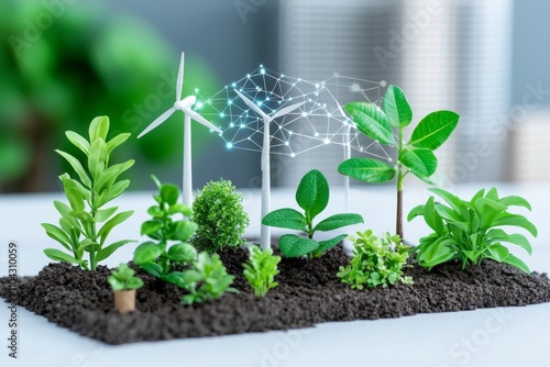 Imagine a cost breakdown for sustainable engineering solutions, themed around sustainability, depicted from a side perspective, highlighting eco-friendly economics, with a futuristic feel, and a