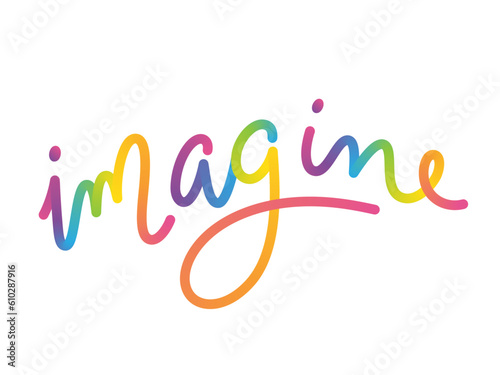 IMAGINE vector monoline calligraphy banner with colorful gradient