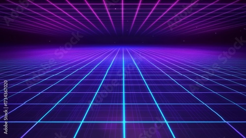 Immersive 3D grid patterns transport users to a futuristic cyberspace.