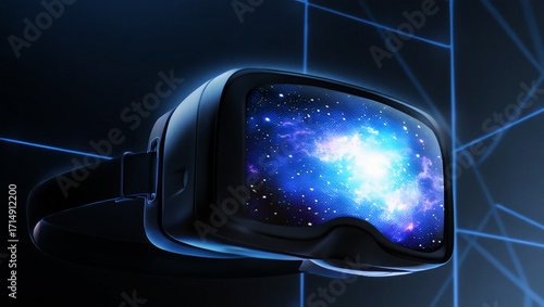 Immersive virtual reality headset displaying vibrant cosmic nebula image