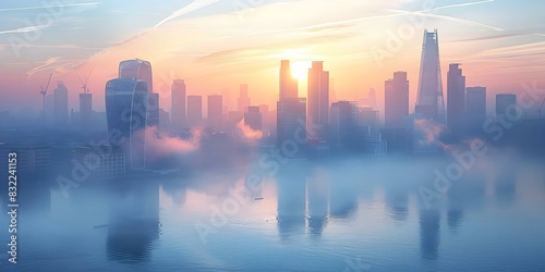 Impact of Smog on Climate Change: Obscured City Skyline. Concept Climate Change, Smog, City Skyline, Environmental Impact, Air Pollution