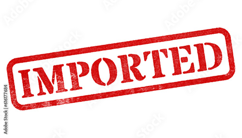 Imported red rubber stamp isolated on transparent background with distressed texture effect