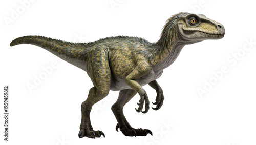 Impressive realistic feathered raptor dinosaur creature isolated for prehistoric themes