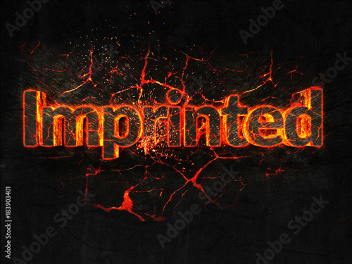 Imprinted Fire text flame burning hot lava explosion background.