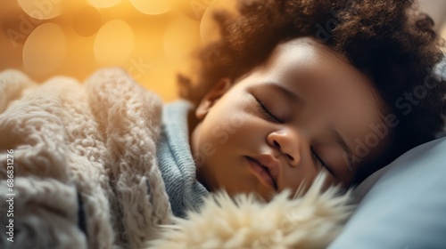 In a kid's room, a baby peacefully sleeps in a comfortable bed.