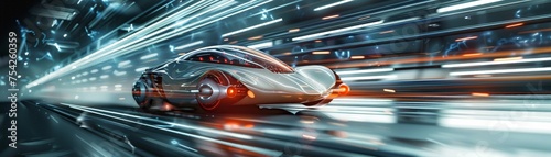 In a sci-fi atmosphere, futuristic car