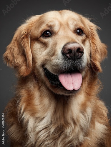 in a studio photo a friendly golden retriever dog is captured pulling a funny face radiating charm and playfulness this portrait perfectly captures the lovable and humorous nature of the dog