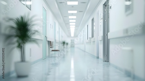 In medical settings, a white hospital hallway with an unfocused background is a typical scene. It typically features clean, unfocused background