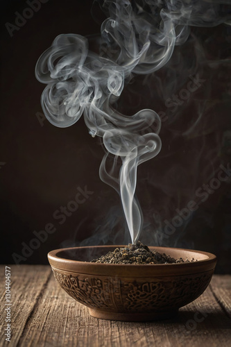 Incense smoke. Rising incense smoke gently curls upward. In dark soothing tones