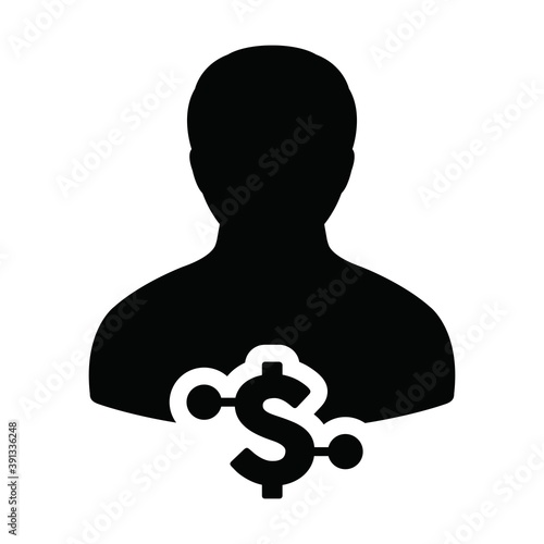 Income icon vector digital dollar currency with male user person profile avatar for digital wallet in a glyph pictogram illustration