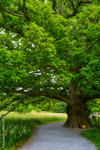 Incredibly old and large oak tree with a lush green crown