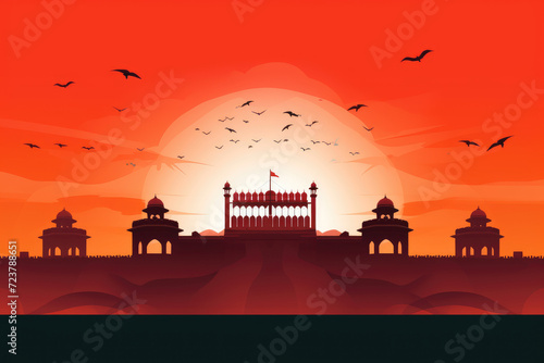 India Independence Day illustration, Red Fort background. Generative ai