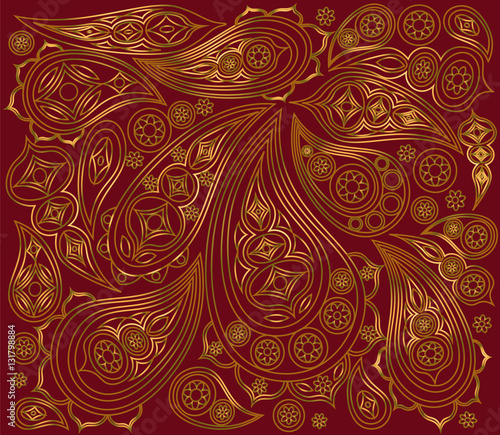 Indian gold pattern on a red background. Vector