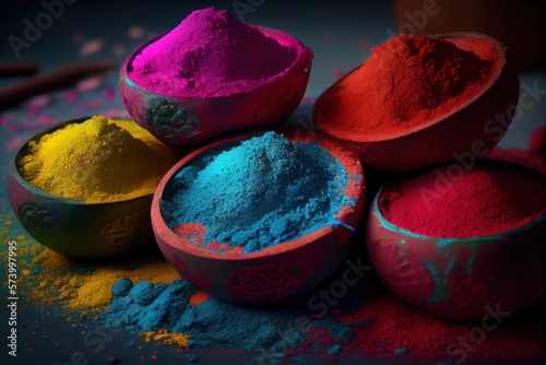 Indian Holi Festival Colors in Bowl. Generative AI.