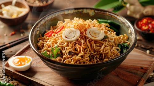 Indomie Goreng Or Fried Noodle On Traditional Pottery Presentation