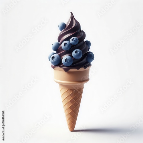 Indulge in a Delicious Chocolate Soft Serve Ice Cream Cone Topped with Fresh Blueberries