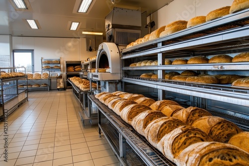 Industrial bakery chaos with large ovens modern facility interior view